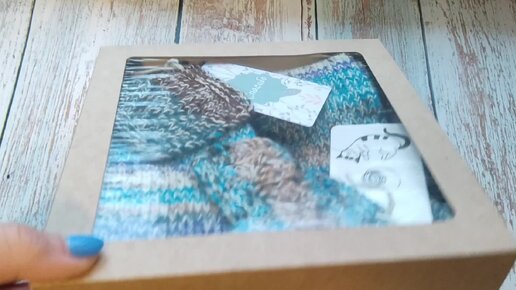Упаковка вязаного подарка. Крафтовая коробочка с окошком