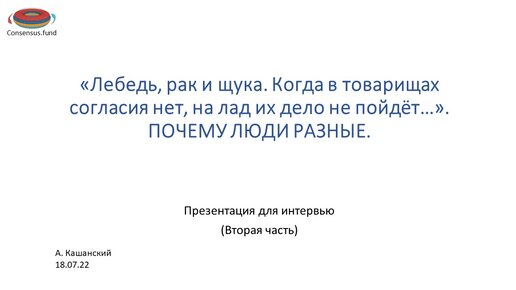 Кашанский А.В. «Почему люди разные (Лебедь, рак и щука)»