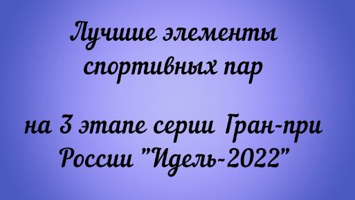 Лучшие элементы спортивных пар на 3 этапе серии Гран-при России "Идель-2022"