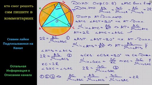 Геометрия Стороны треугольника пропорциональны синусам противолежащих углов и равны двум радиусам описанной окружности