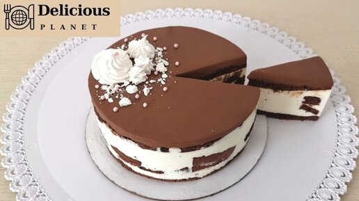 Торт из шоколадного бисквита и ганаша со сливочным суфле