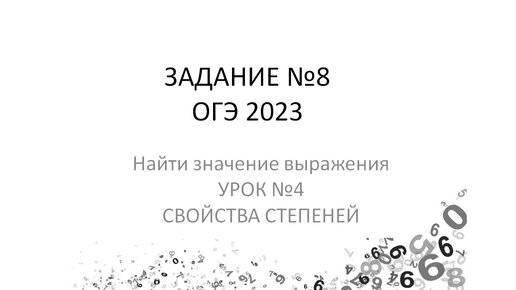ОГЭ 2023. ЗАДАНИЕ 8. УРОК 4 "СВОЙСТВА СТЕПЕНЕЙ"