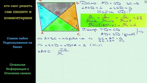Геометрия Медиана CD треугольника ABC образует со сторонами AC и BC углы α и β соответственно BC = a Найдите медиану CD