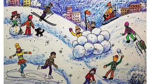 Как нарисовать фигуру человека в движении. Зимний пейзаж. Видео урок для начинающих.