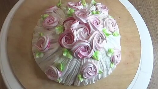 Торт без выпечки. Сделала из остатков бисквита мини тортик. Украшение торта выполнила белково-заварным кремом