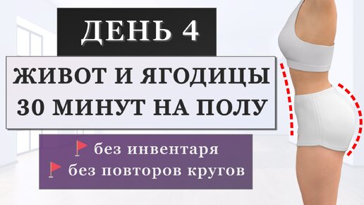День 4: Тренировка для ягодиц и живота на полу на 30 минут без повторов кругов (Программа для начинающих на 7 дней)