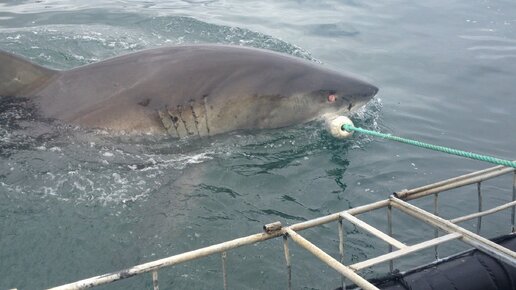 Большая белая акула-вымирающий хищник.Не так много осталось мест,где можно поплавать с ней в клетке.Это Гансбаай в ЮАР, о.Гуадалупе в Мексике и о.Стюарт в Новой Зеландии. На всю жизнь запомните!