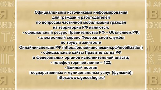 Официальные источники информирования для граждан и работодателей по вопросам частичной мобилизации на территории РФ