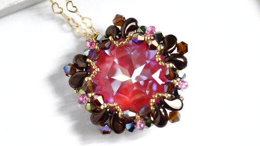 Сказочный кристалл, в бисерной ювелирной оправе. Шикарный кулон своими руками