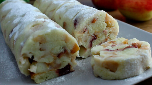 Простой рулет с яблоками к чаю: готовится гораздо быстрее, чем пирог шарлотка (можно менять начинки и делать хоть каждый день, новый рецепт)