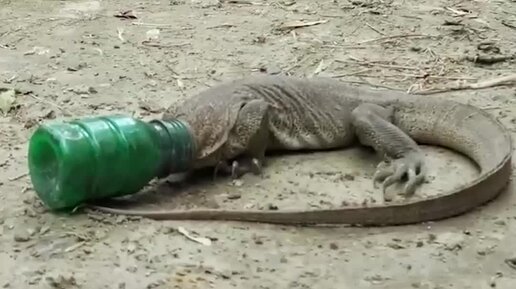 В Индии освободили варана, застрявшего в пластиковой бутылке