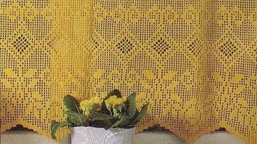 Идеи красивых занавесок на окна в технике филейного вязания крючком.