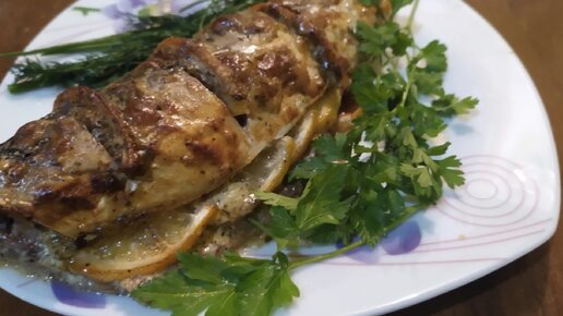 Скумбрия запеченная в духовке в майонезно-лимонном маринаде.