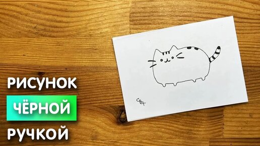 Рисунок черной ручкой "Котик" для начинающих | Милые и легкие картинки для детей и взрослых