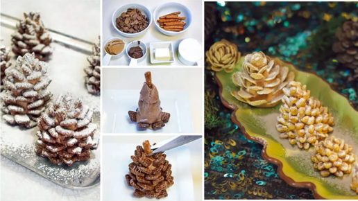 Что испечь на новый год. Десерт Без Выпечки на новогодний стол. Хрустящая Шишка и еда и украшение.