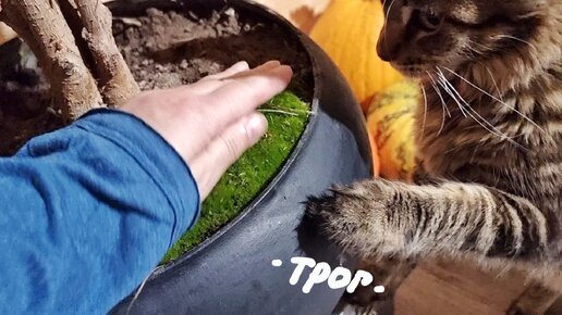 Фикус обрастили мхом. Сделали уютное с кошкой Морошкой