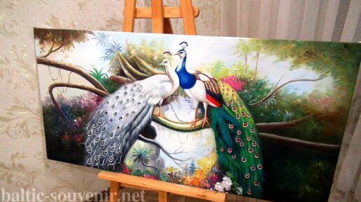 ПАВЛИНЫ, 120х60см Картина маслом на холсте / Союз художников ArtelKaluga Художественная Артель