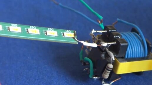 Старый секрет "Мини Тесла" зажигает целую линейку светодиодов от одной 1,5 вольтовой батарейки.