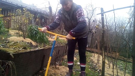 Малина осенью. Финальная подготовка к зиме. Ручной культиватор "Торнадо" очень помогает.