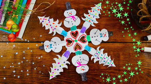 Показываю, как вырезать оригинальную снежинку "Снеговички и Елки"