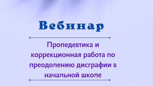 Пропедевтика и коррекционная работа по преодолению дисграфии в начальной школе