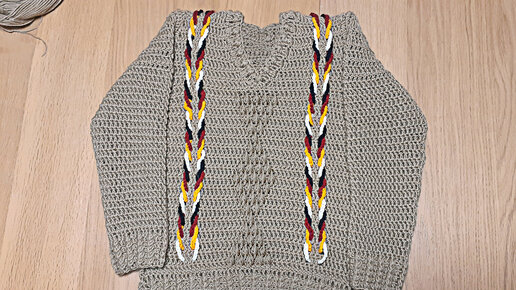 Узор крючком для детского свитера с цветными косами и шишечками