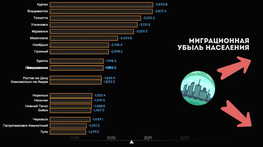 Миграционная убыль населения РФ.Топ городов России по количеству убывших жителей.Статистика