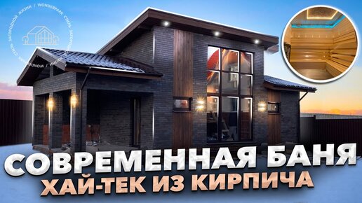 Современная баня из кирпича (блоков) - проект хай-тек с панорамными окнами