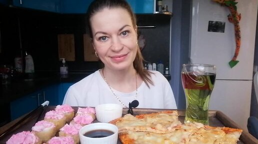 МУКБАНГ ПИЦЦА ГАВАЙСКАЯ, РОЛЛЫ, СУШИ/MUKBANG SUSHI ROLLS HALK FAMILY