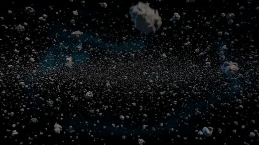 Полёт Через Метеориты и Астероиды в Космосе. Бесплатный Футаж 4К версия 01