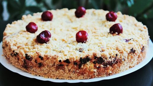 Тертый пирог с творогом и вишней. Рассыпчатый и ароматный.