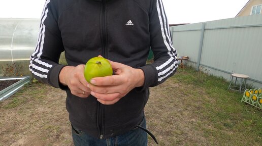 На даче осень. Выкапываем остатки картошки. Дегустируем томат изумруд.