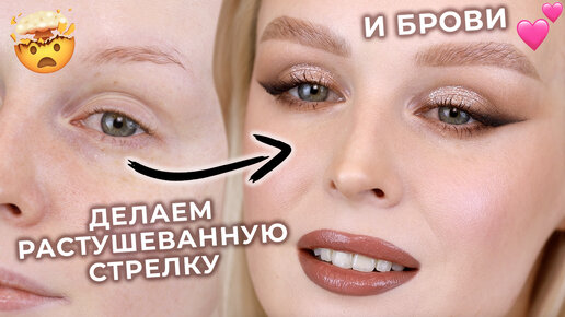 Растушеванная стрелка и макияж бровей на каждый день | Макияж пошагово для новичков 💄