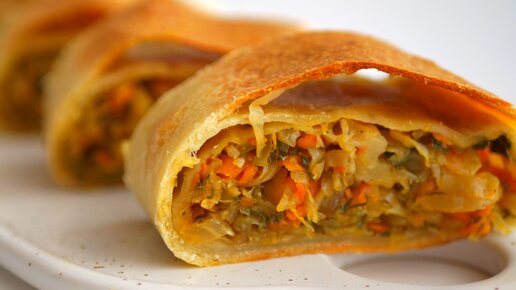 Штрудель с тушёной капустой - просто, быстро, вкусно. Подходит для постного стола