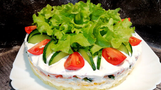 Гости спрашивают:из чего же он? Праздничный слоёный салат без майонеза с вкусной заправкой. Необычно!