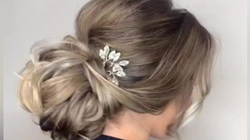 Репетиция свадебной прически, низкий пучок с украшением
