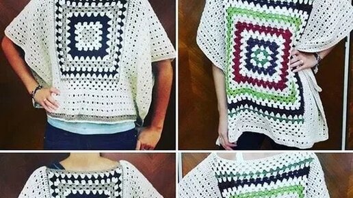 Модные кофточки, связанные с использованием мотива " Бабушкин квадрат".