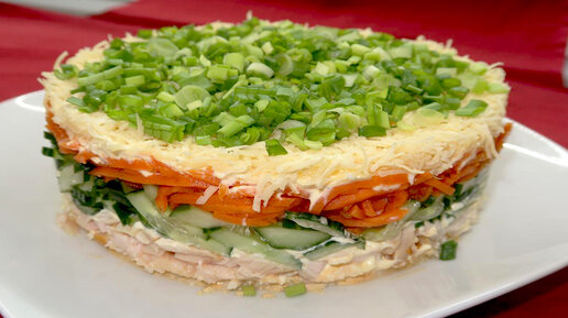 Вкусный салат с копченой курицей и корейской морковью на новый год. Попробовав его вам захочется приготовить этот салат еще не один раз