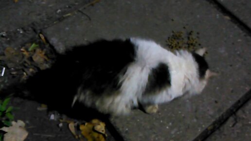 Котик медленно и аккуратно ест