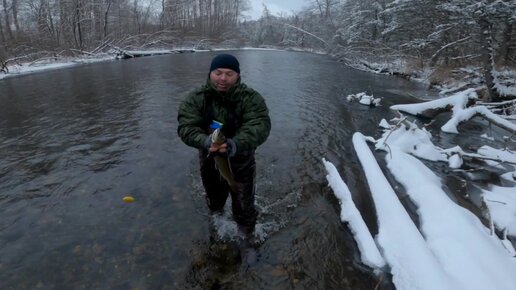 Отличное закрытие по жидкой воде на горной речке. (ленок хариус.)