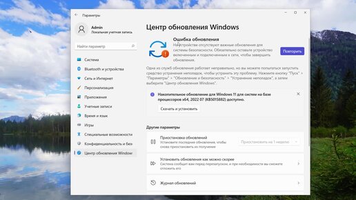 Ошибка обновления Windows 11.Не скачиваются обновление системы Windows