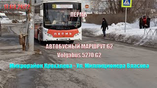 Пермь | Автобусный маршрут 62 | Volgabus 5270 G2 (CNG) | Микрорайон Крохалева - Ул Милиционера Власова | 17.03.2022