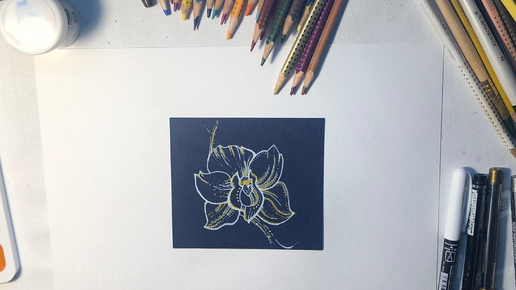 Как нарисовать орхидею. Простой рисунок маркерами на цветной бумаге. Рисуем вместе.