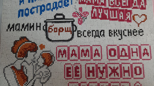 Процесс выкладки алмазной мозаики "Правила мамы"