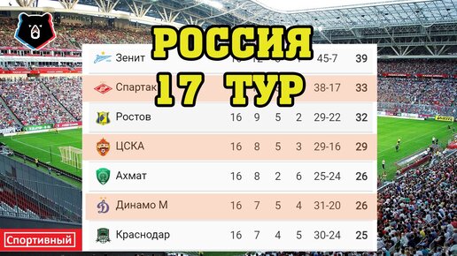 Чемпионат России по футболу (РПЛ). Результаты. Расписание. Таблица. 17 тур.