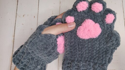 Плюшевые митенки - КОТОЛАПКИ. Митенки - кошачьи лапки крючком. Тренд TikTok. Подробный МК. Crochet Paw Fingerless Gloves