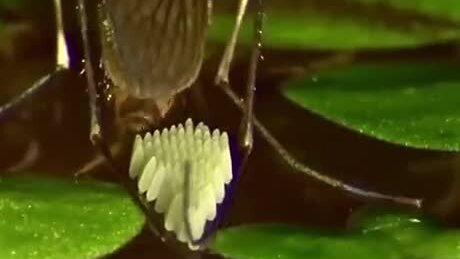 Комар откладывает яйца
