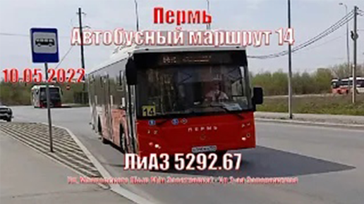 Пермь | Автобусный маршрут 14 | ЛиАЗ 5292.67 (CNG) | Ул. Маяковского - Ул. 2-ая Запорожская | 10.05.2022