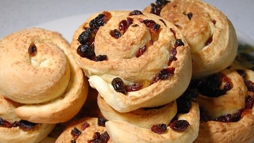 Сдобные булочки с изюмом и вяленой клюквой