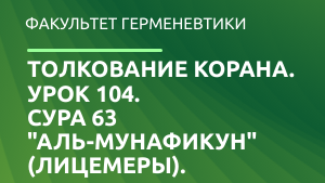 Толкование Корана. Урок 104. Сура 63 "аль-Мунафикун" (Лицемеры).